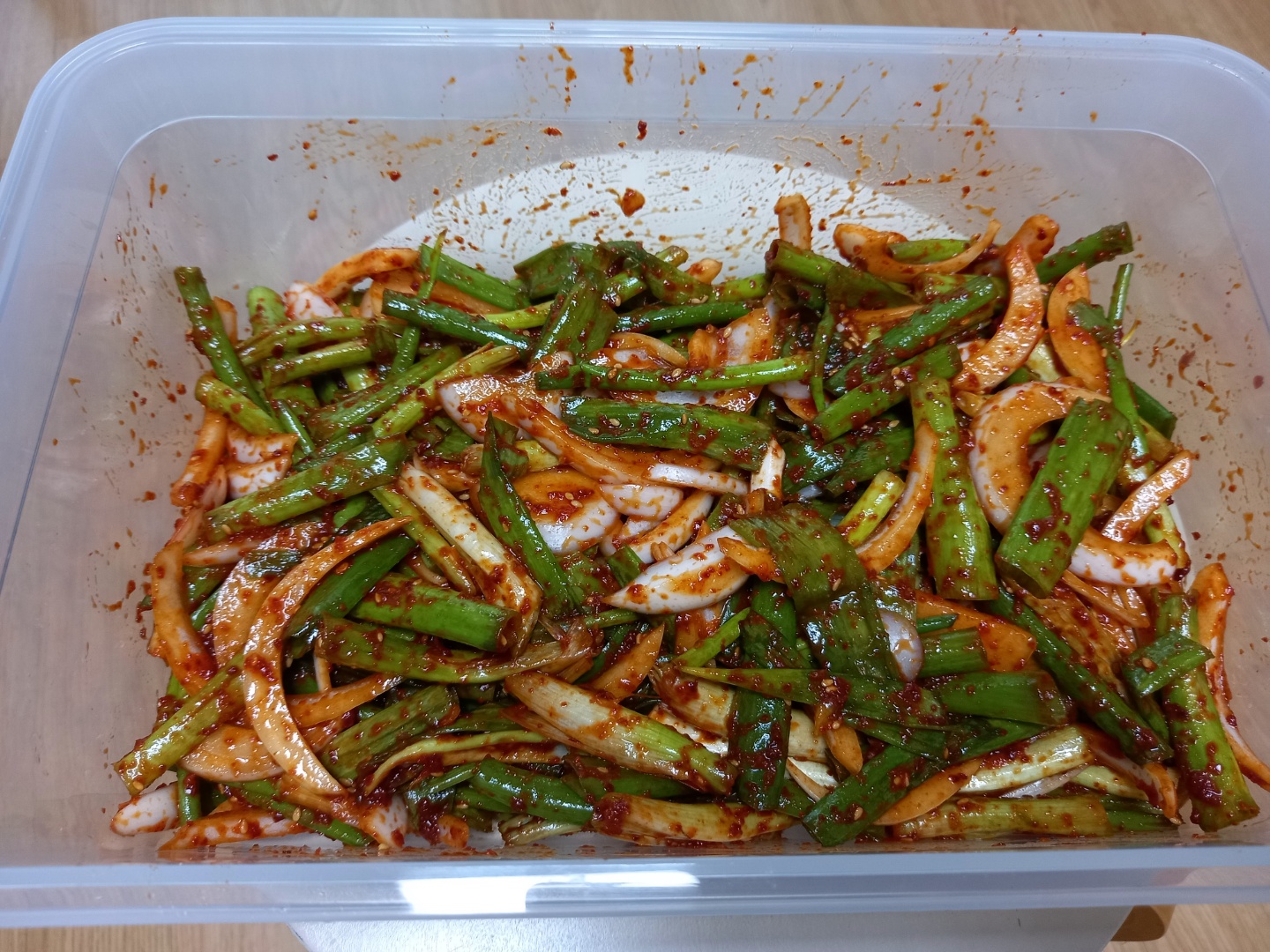 나는 까나리액젓 3 고춧가루 3 설탕 2 통깨 반 술 비율로 했다.