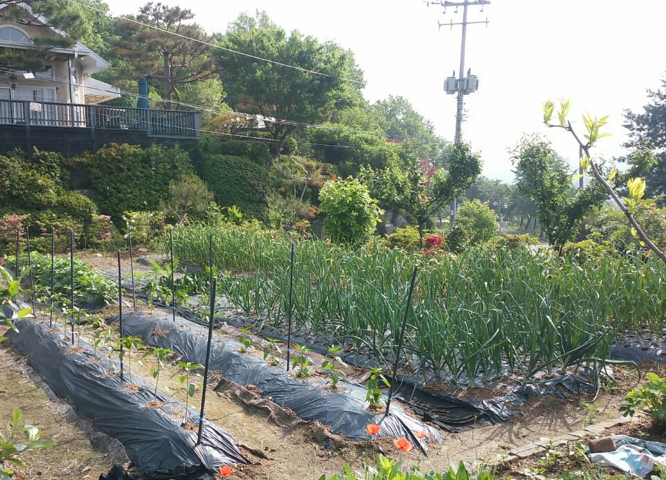 봄에 그렇게 가물어서 물을 주곤 했는데 요즘은 비가 또 너무 자주 오는 편이라 썩을까봐 걱정이 된다. 안그래도 이웃집은 마늘에 벌레가 생겨서 할 수 없이 약을 뿌렸다. 그 이유가 여러 가지가 있겠지만 물을 많이 주어서일 수도 있다는 것이다. 바람이 잘 안 부는 오목한 곳에 텃밭이 있으면 그렇다.