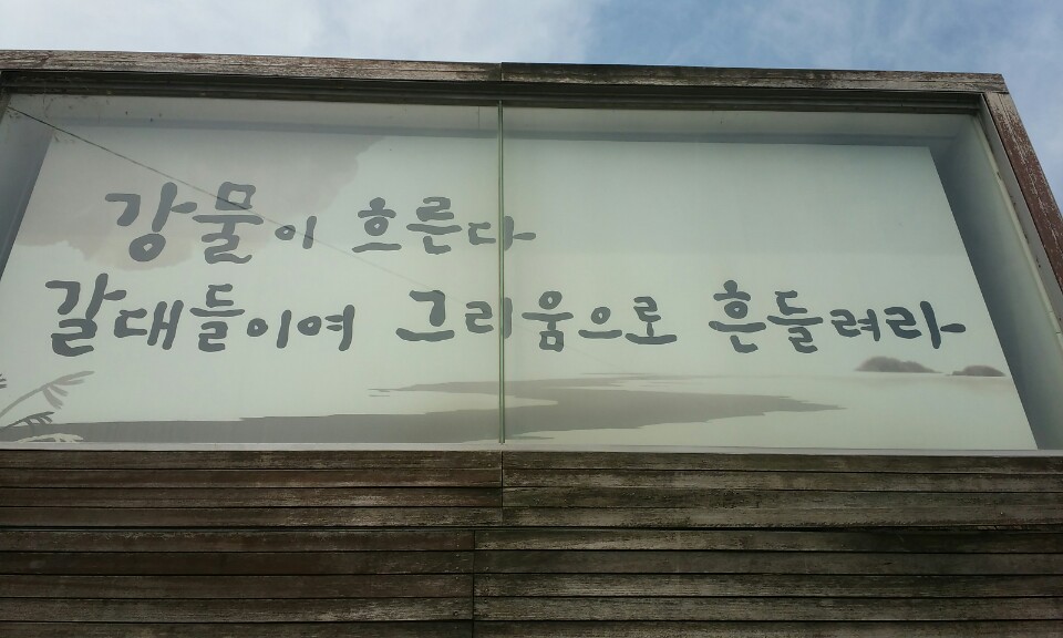 물의 정원으로 가는 입구에 걸려있는 간판이다. 글을 읽으면서 물의 정원 산책에 기대감이 더했다. 강물을 가까이서 볼 수 있고 갈대들이 푸르게 솟아나와서 자라고 있는 곳. 갈대는 어떤 그리움을 안고 있을까? 이 글을 쓴 사람의 그리움이 궁금하다.